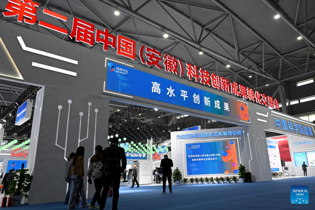 Visitors are seen at the 2nd China (Anhui) Science and Technology Innovation Achievement Transformation Fair held in Hefei of east China’s Anhui Province, April 26, 2023. The three-day 2nd China (Anhui) Science and Technology Innovation Achievement Transformation Fair kicked off in Hefei Wednesday. (Xinhua/Huang Bohan)