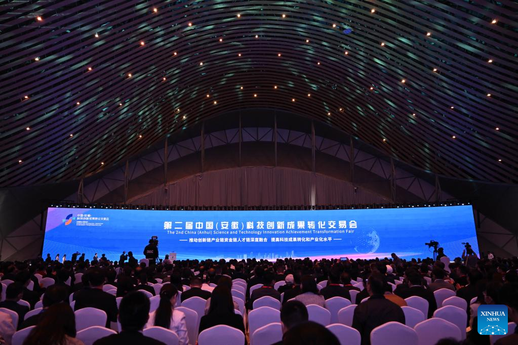 This photo taken on April 26, 2023 shows the opening ceremony of the 2nd China (Anhui) Science and Technology Innovation Achievement Transformation Fair held in Hefei of east China’s Anhui Province. The three-day 2nd China (Anhui) Science and Technology Innovation Achievement Transformation Fair kicked off in Hefei Wednesday. (Xinhua/Huang Bohan)
