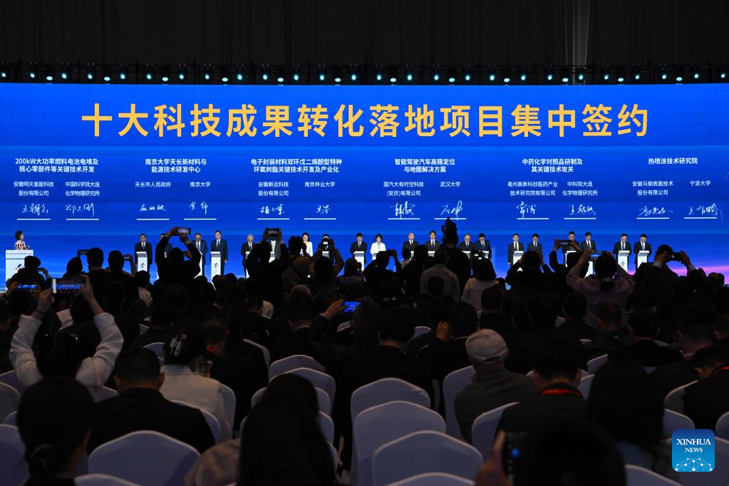This photo taken on April 26, 2023 shows the signing ceremony at the 2nd China (Anhui) Science and Technology Innovation Achievement Transformation Fair held in Hefei of east China’s Anhui Province. The three-day 2nd China (Anhui) Science and Technology Innovation Achievement Transformation Fair kicked off in Hefei Wednesday. (Xinhua/Huang Bohan)