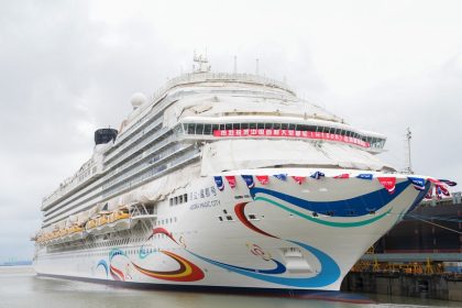 China's first domestically-built large cruise ship, the "Adora Magic City," left port…