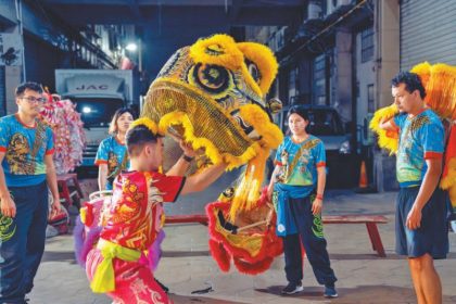 Peruvian young man into Chinese lion dance