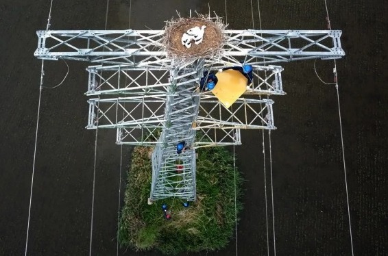 There aren’t too many tall trees in the grassland, which makes transmission towers the preferred nesting sites for many bird species. In the past, local authorities attempted to deter birds from perching on the towers by installing repellent devices, but the effect was limited. Pondering over this issue, power workers came up with the idea that instead of trying to prevent birds, they should create artificial bird nests to guide the birds towards safer locations for nesting.