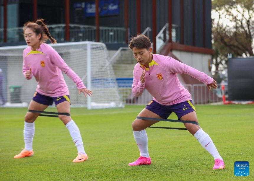 Xiao Yuyi of China attends a training session prior to the 2023 FIFA Women’s World Cup in Adelaide of Australia, July 10, 2023. (Photo by Xie Sida/Xinhua)