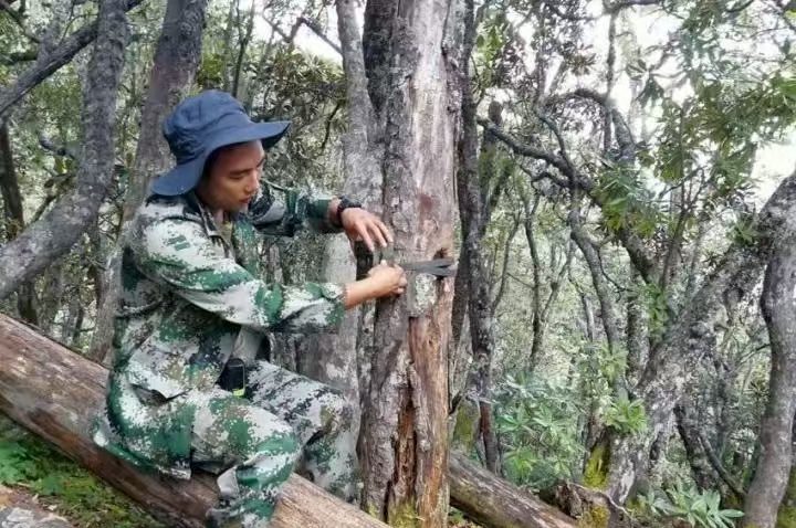 Yu Zhonghua installs an infrared camera for wildlife monitoring in the Baima Snow Mountain Nature Reserve, southwest China's Yunnan province. (Photo provided by Yu Zhonghua)