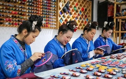 She told People’s Daily that the support she received from all relevant parties was crucial to this workshop, which has turned from a shop of embroidered fabrics to a workshop of intangible cultural heritage that integrates R&D, production, sales and training.