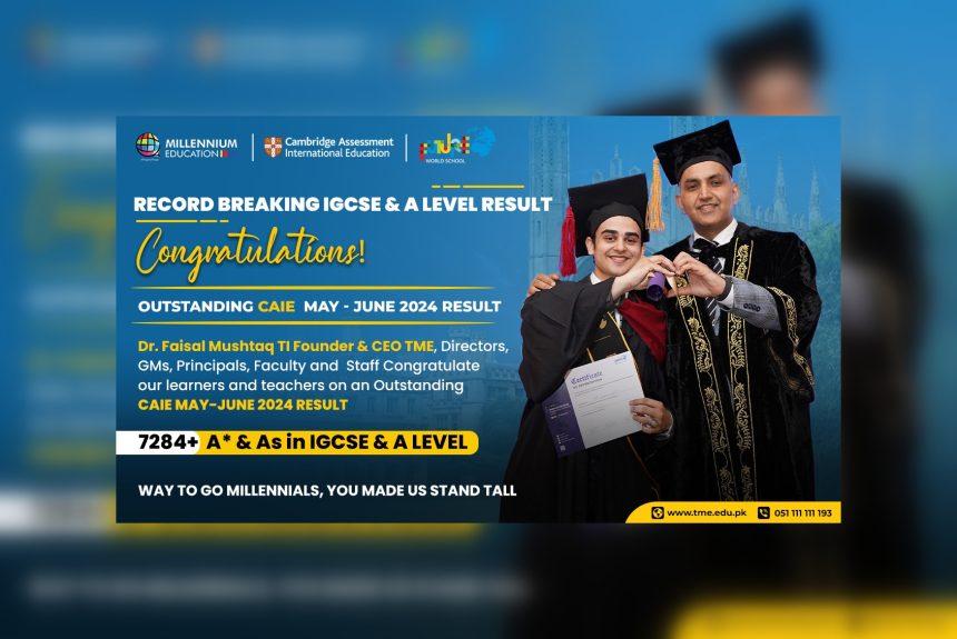 Islamabad: Continuing a legacy of excellence, Roots Millennium Education Group and Future World Schools & Colleges achieved remarkable academic success in the Cambridge Assessment International Education CAIE Examinations 2024 says a press release.