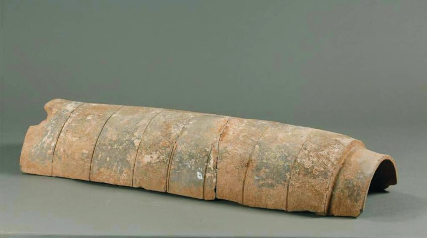 The artifacts primarily consist of building materials from the Spring and Autumn period, specifically argillaceous grey pottery. These materials include trough-shaped slab tiles, tubular tiles, semicircular tiles, among others.