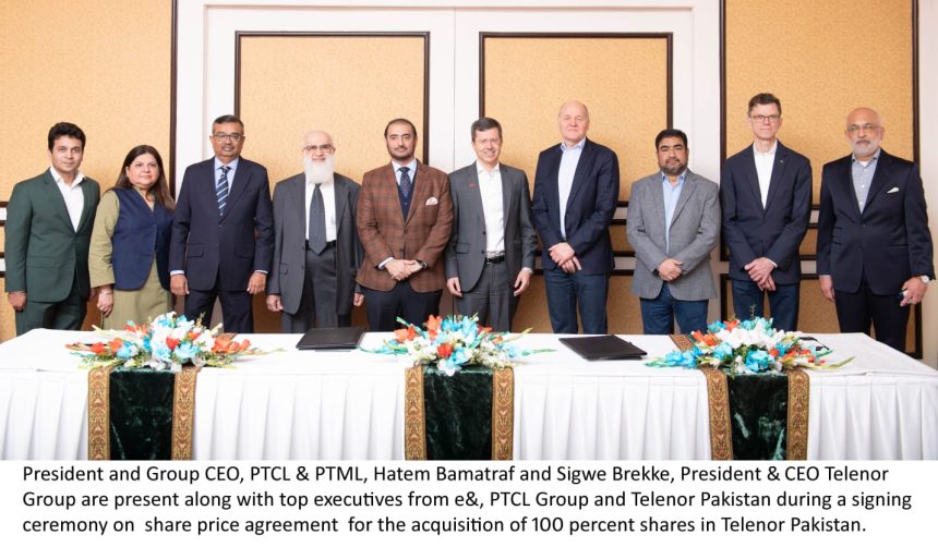 Islamabad, December 14, 2023: Pakistan Telecommunication Company Limited (“PTCL”), part of e& Group (e&), today announced that it has signed a Share Purchase Agreement with Telenor Pakistan B.V. (Telenor) to acquire a 100% stake in Telenor Pakistan (Pvt) Ltd (Telenor Pakistan) based on an Enterprise Value of PKR 108 Billion on a cash free, debt free basis.
