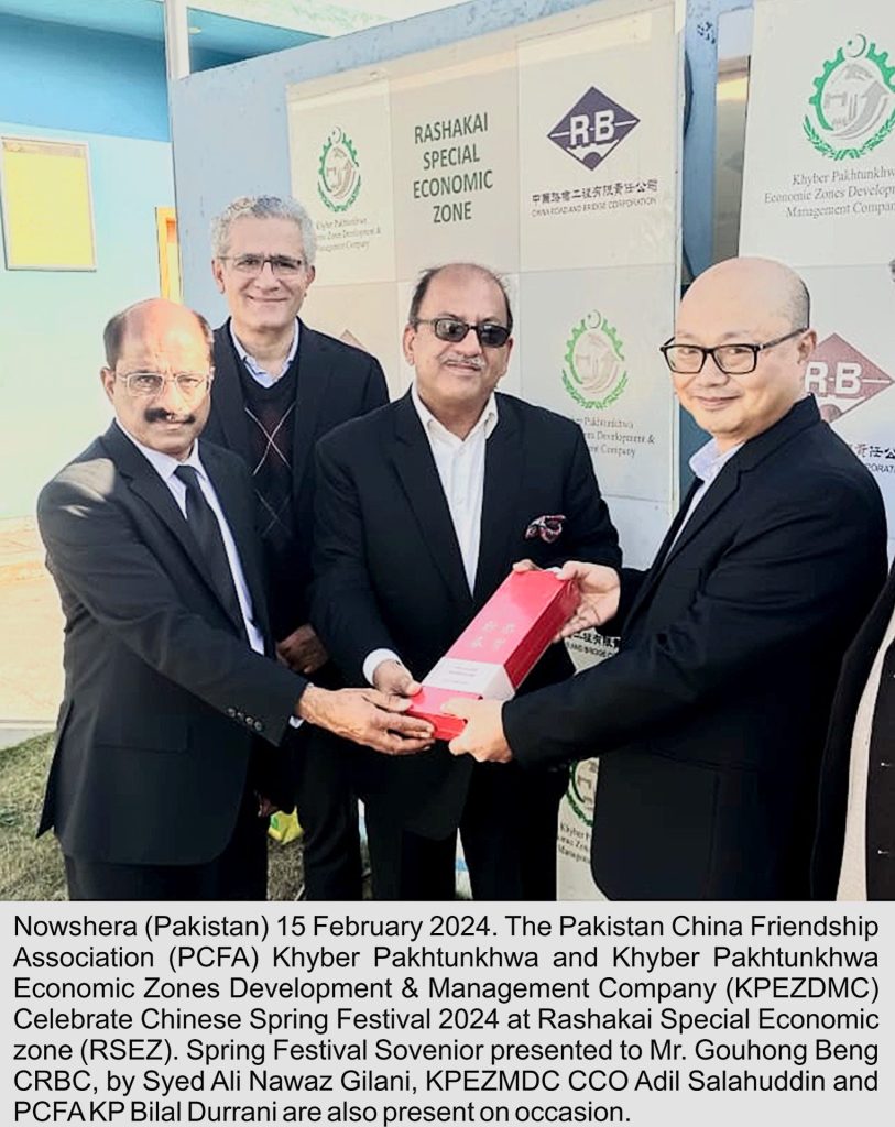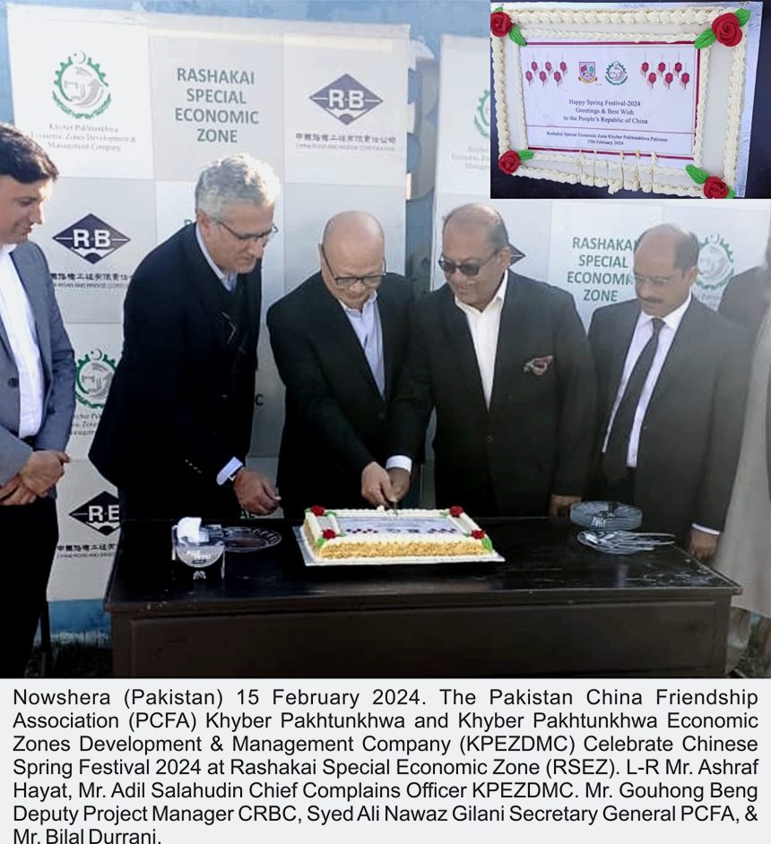 Nowshera (Pakistan): The Pakistan-China Friendship Association (PCFA) Khyber Pakhtunkhwa Province Pakistan & Khyber Pakhtunkhwa Economic Zones Development & Management Company (KPEZDMC) celebrates the Chinese Spring Festival 2024 at Rashakhi Special Economic Zone (RSEZ) the flagship Economic Zone under CPEC.