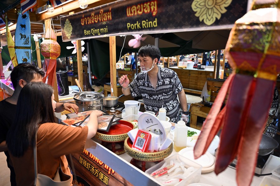 “The Thai food here is authentic, and the vendors speak Thai, which gives me an illusion of being in Thailand,” said Zheng Sisi, a tourist from southern China’s Guangdong Province.